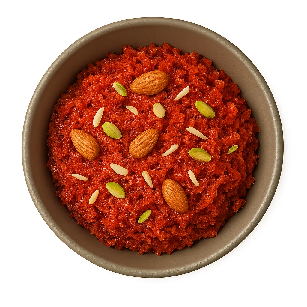 Dessert aux carottes chaud et réconfortant mijoté lentement avec du lait, du sucre et de la cardamome jusqu'à tendreté et crémeux, fini avec une généreuse saupoudrée de noix.