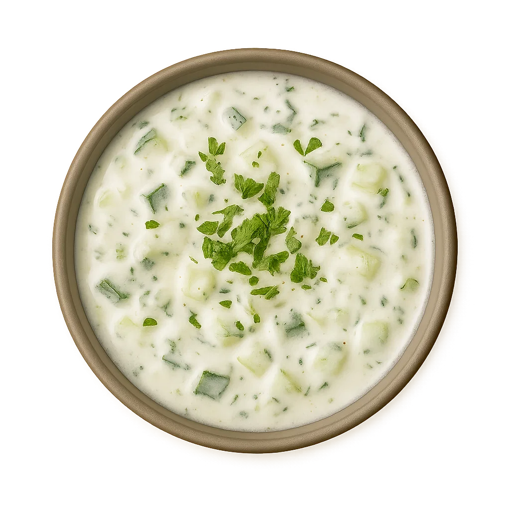 Trempette de yaourt rafraîchissante parfaite pour équilibrer les plats épicés. Préparée avec du yaourt frais et des légumes, elle ajoute un élément rafraîchissant et crémeux à votre repas.