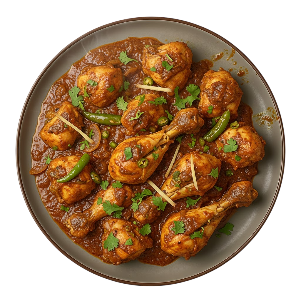 Krachtige en pittige curry gekookt in een traditionele karahi met verse tomaten, groene pepers en aromatische specerijen. Vol karakter en perfect voor liefhebbers van pittig eten.